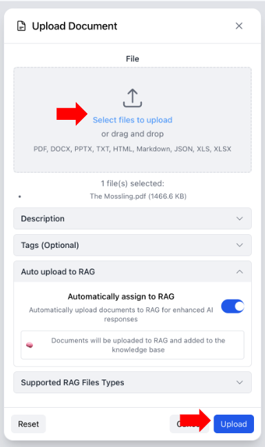 ✨ Pro Tip: You can manage and upload multiple documents, folders, and even crawl websites using the Document Library.